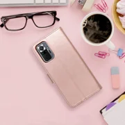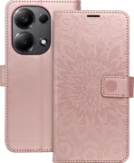 Mezzo Book caz carte pentru Xiaomi Redmi Notă 13 Pro / Poco M6 Pro, care oferă protecție completă pentru telefonul dvs. Este fabricat din piele ecologică și parte interioară TPU. În culoarea rose-gold cu motiv.